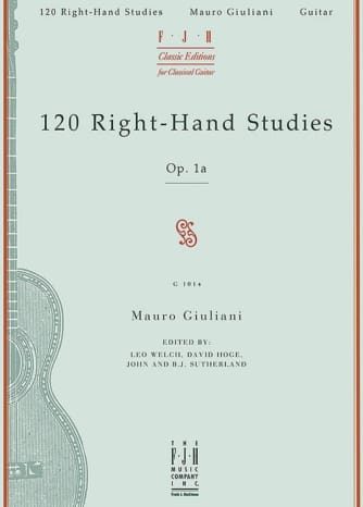 In this version, all of Giuliani's original fingerings for the right hand are included alongside the studies, with alternative fingerings suggested in parentheses. This edition features the initial section of progressive studies and is derived from the edition released by N. Simrock in 1812, titled Studio per la chitarra/ di Mauro Giuliani/Bonna presso N. Simrock.