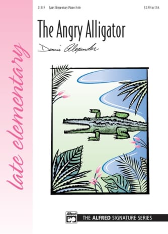This late elementary solo composed by Dennis Alexander is ideal for reinforcing bass clef notes and enhancing reading skills. Set in D minor, both hands are utilized in the bass clef, with the left hand often crossing over the right hand. Students will easily envision an angry alligator while performing. They will appreciate the rich sounds and acquire experience in executing dynamic contrasts. The 3/4 meter will facilitate the production of the powerful sounds associated with a lumbering, furious alligator.