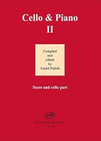 Two volumes titled Cello Meets Piano, edited and published by Arpad Pejtsik, were released many years ago by Könemann Music Budapest. The initial edition sold out rapidly, and no subsequent editions were produced. EMB has committed to releasing a new edition named Cello And Piano, maintaining the original content. These two volumes feature a selection spanning 200 years of music. Eight Baroque sonatas are included; in addition to the renowned D minor sonata by Corelli, several pieces are appearing in a modern edition for the first time in 300 years. Alongside cyclical works (Haydn: Sonatina, Mozart: Divertimento, Vivaldi: Concerto) and sets of variations (Beethoven, Tartini), there are numerous shorter pieces, including not only the well-known minuets by Boccherini, Mozart, and Beethoven but also works that are published here for the first time. Virtuoso pieces are represented by Goltermann's Etude-caprice and Jenkinson's Dance of the Sylphids, while lighter compositions include Joplin's Ragtime. The collection comprises 136 pages. CONTENTS: Albrechtsberger, Johann Georg: Scherzando, Aldrovandini, G. A. V.: Sonata, Arensky, A.: Chant triste, Op. 56, No. 3, Bach, Johann Sebastian: Air, BWV 1068/II, Beethoven, Ludwig van: Andante con variazioni, WoO 44b, Bella, Domenico dalla: Sonata, Boccherini, Luigi: Minuetto, Boni, Gaetano: Sonata Op. 1, No. 5, Dvorak, Antonin: Appassionato, Op. 75, No. 3, Faure, Gabriel: Serenade toscane, Op. 3, No. 2, Goltermann, G.: Etude-caprice, Op. 54, No. 4, Grieg, Edvard: Poeme erotique, Op. 43, No. 5, Haydn, Joseph: Sonatina, Hob. XI:101, 5, 108, Massenet, Jules: Air de Ballet (Scene pittoresque), Mendelssohn-Bartholdy, Felix: Lied ohne Worte, Op. 19, No. 4, Mozart, Wolfgang Amadeus: Divertimento, from KV 487, Passionei, Carlo: Sonata, Schubert, Franz: Ave Maria, Op. 52, No. 6, Schumann, Robert: Schlummerlied, Op. 124, No. 16, Skrjabin, Alexander Ny.: Romance, Tartini, Giuseppe: L'arte del arco, T... Printed Music CELLO & PIANO Grade level: 5,6,7,8 BEST SELLER!