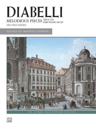This collection features 28 engaging duets designed for piano, where the primo part maintains a consistent five-finger position for both hands. The secondo parts are tailored for more advanced students, providing a suitable challenge. The pieces are composed using a limited range of three sharps and flats, ensuring accessibility while still promoting skill development.