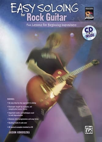 Discover the art of rock guitar soloing with Easy Soloing for Rock Guitar, a comprehensive book and CD set designed for beginners eager to shine on stage. This resource equips aspiring musicians with essential scales, techniques, and helpful tips to kickstart their journey. Readers can either follow the provided solos or use them as inspiration to create their own unique pieces. Serving as a stress-free introduction to rock improvisation, this guide is perfect for those familiar with the basics of guitar who wish to enhance their skills. It features standard music notation and tablature, along with a CD that showcases all the examples, making it an invaluable tool for students at any level.