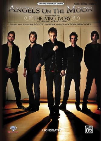 Sheet music for "Angels on the Moon," the prominent single by Thriving Ivory from their self-titled album. The song has secured positions on various U.S. Billboard charts as well as the Canadian Hot 100, resonating deeply with listeners through its elegant piano melodies and sincere lyrics.