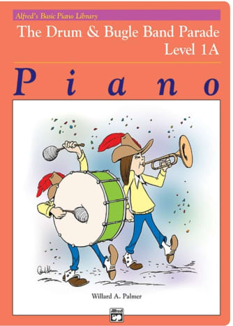 This piece is associated with Alfred's Basic Piano Library, Level 1A. First-year students will appreciate the drum and bugle sounds featured in this C Major (C Position) recital piece, which incorporates skips, phrasing, attention to rests, and the application of the sustain pedal.