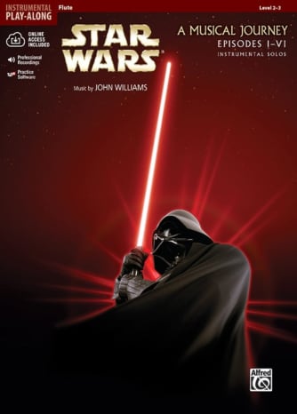 Star Wars® A Musical Journey (Music from Episodes I-VI): Instrumental Solos presents an exciting collection of music from all six Star Wars® films, arranged for a variety of instruments including flute, clarinet, alto sax, tenor sax, trumpet, horn in F, trombone, piano, violin, viola, and cello. These arrangements are designed to be fully compatible, allowing for both solo performances and ensemble play. However, due to differences in key and instrument ranges, the wind and string arrangements are not interchangeable. Each book is tailored for players at Levels 2-3 and comes with a professionally orchestrated accompaniment recording. This recording features a demo track showcasing a live performance, followed by a play-along track. Additionally, the books include vibrant four-color artwork alongside black and white images from the films. The collection features iconic pieces such as the Main Theme, Duel of the Fates, and The Imperial March, and is available through MakeMusic Cloud.