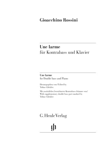 In the late 1850s, when Rossini had largely ceased composing, he created a short elegy for double bass and piano that he titled "une larme" ("a tear"). This modest work later served as the foundation for a more expansive set of cello and piano variations. The significance Rossini placed on this double bass piece is evident in the richly ornamented dedication copy he produced in 1858. This previously obscure source, now located in Russia, has been consulted for the first time in preparing a critical Urtext edition. As with Henle's other Urtext publications for this instrument, double bass specialist Tobias Glöckler has prepared versions in both solo and orchestral tunings, and added fingerings and bowings to the solo part.