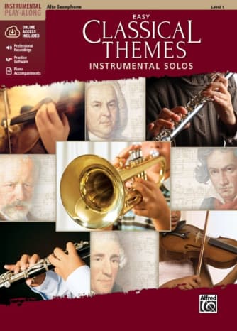 This collection presents a diverse array of classical themes tailored for various instruments, including flute, clarinet, alto sax, tenor sax, trumpet, horn in F, trombone, violin, viola, and cello. Each volume features meticulously arranged pieces suitable for level 1 students, ensuring accessibility and enjoyment. Accompanying the books is a recording that includes a fully orchestrated demo track for each piece, showcasing a live instrumental solo followed by a play-along track. Additionally, the package provides PDFs of piano accompaniments and access to Alfred's Tempo Changer Software. Notable titles in this series include Vivaldi's "Spring," Beethoven's "Ode to Joy," and Tchaikovsky's "Dance of the Sugar Plum Fairy," among others, all available in MakeMusic Cloud.