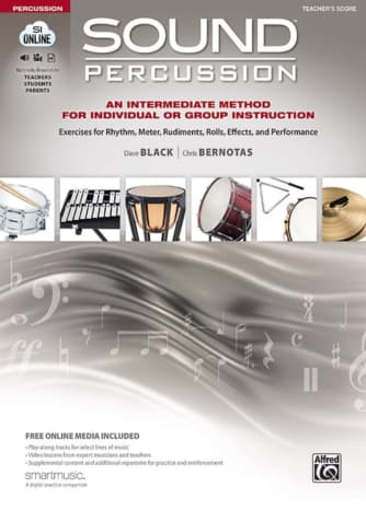 As a member of the Sound Innovations family, Sound Percussion addresses the demand for a thorough percussion method that offers a clear progression of notes, rhythms, and skills suitable for both group and individual lessons. Sound Percussion adopts a transparent and adaptable approach, providing ample reinforcement. The following books are available: Teacher's Score * Snare Drum and Bass Drum * Mallet Percussion * Timpani * Accessory Instruments.