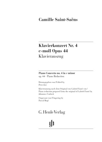 The Piano Concerto No. 1 in A minor by Camille Saint-Saëns, composed in 1875, was an immediate success despite its unusual form. Structured in two sections, each with two continuous movements, the work corresponds almost perfectly to the "symphonic concerto" model and is one of the composer's most popular concerti. For the 1877 first edition, the renowned composer Gabriel Fauré undertook the piano transcription of the orchestral part, providing an optimal basis for Johannes Umbreit's piano reduction in the first Urtext edition of this work. Continuing Henle's authoritative series of Saint-Saëns' piano concerti, this edition also features fingerings by Pascal Rogé, one of the foremost experts on the composer's piano works.